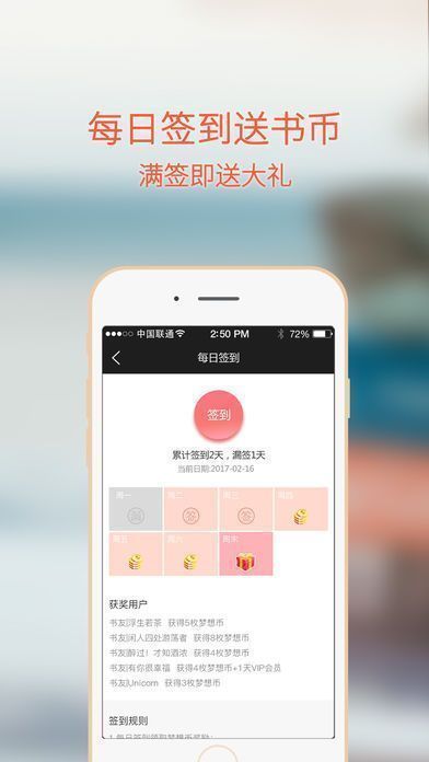 3、新增“签到”功能,每天签到领书币;