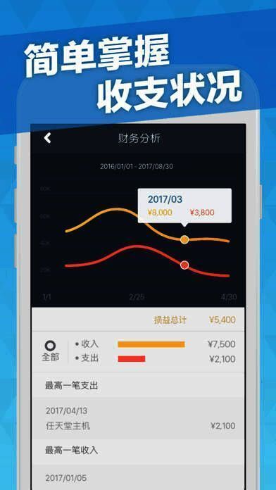精心设计的分析图表让你一眼看出收支状况,让你对自己的个人理财和开销状况有更清楚的理解!