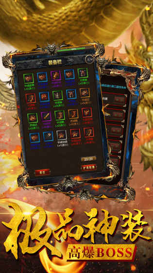 3、极品神装,刷怪升级神速无比。