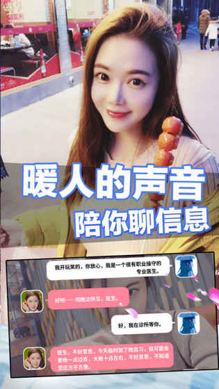 暖人的声音,陪你聊短信,除了文字短信还有语音短信,发展剧情,随时随地陪你,让你了解她们的往事。