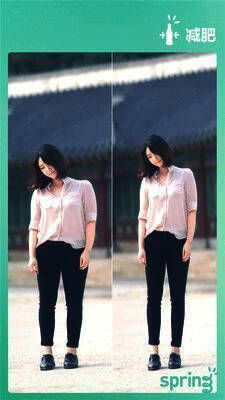 2、看过很多微博上晒照的男神女神们,那修长的腿、纤细的腰、尖瘦的脸什么的……简直让人羡慕。为什么我们自己拍出来的自拍就是一圈圆滚滚的秤砣呢?不要和我说冬天穿衣服多的效果,脱了衣服你也变不了大长腿。快用spring弹簧相机app吧。