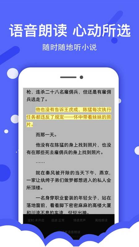 4、语音朗读,心动所选,随时随地听小说。
