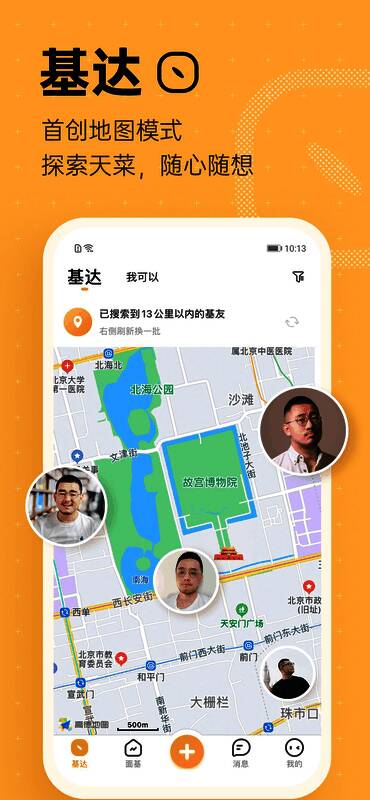 4、能够直接一张这里的地图查找好友的功能,可以快速的发现周围正在使用的用户。