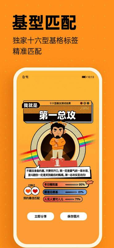 「基达」:展现你附近corgi用户,不同于市面上现有的同质化交友app,corgi可通过大数据测算出你们的匹配度,你们可以根据大家共同的兴趣爱好开始沟通,拒绝尬聊;并当你的天菜在你附近时,系统会主动提醒你,让你不会错过任何面基天菜的机会。