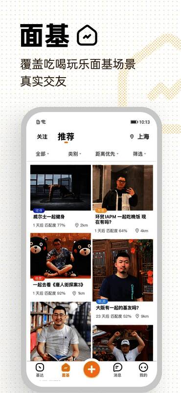 「面基」:成千上万的约会活动都在这里,你可以根据自己的兴趣爱好发起活动寻找趣味相投的基友,也可以你按照兴趣爱好挑选想参加的活动,还可以参加你关注的人发起的活动。