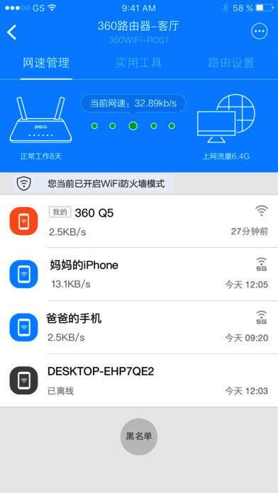 1、设备列表:随时随地管理联网设备,状态一目了然。你可以针对性地设置任一设备的网络访问权限、数据访问权限、智能分配带宽、还可以起个绰号;