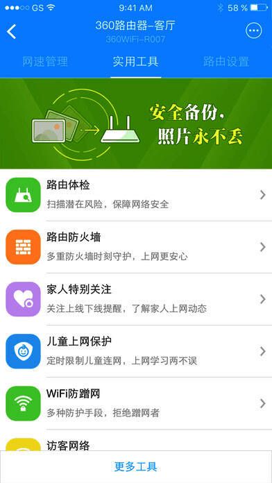 现在部分用户对于自己的私人无线网络管理过于松懈,致使有人恶意蹭网,乃至通过无线网络输送病毒。这个时候保护个人无线网络安全就成为一件至关重要的事。《360智能管家》为你提供全方位的无线网络防护,让你可以安安心心的上网。