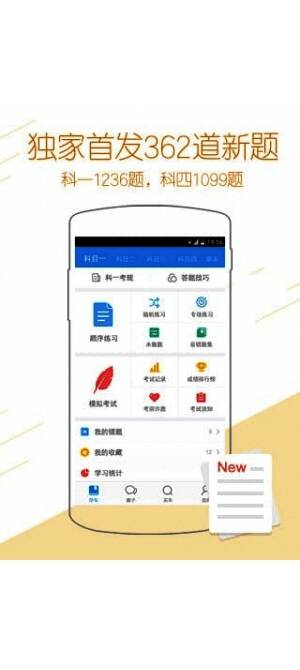 1、2017年新题库:提供2017年的科目一科目四题库;