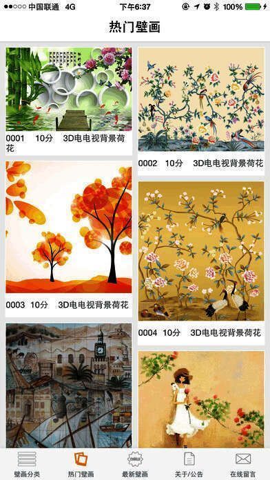 《壁画世界》是一个展示个性化室内装修的app,百位设计师精心策划最前卫、最时尚的设计图案都囊括其中,里面有数不胜数的高清图案任你挑选,还有门类齐全的热门壁画丰富你的收藏,不同风格的设计素材让你的家与众不同,感兴趣的朋友赶快来下载吧!