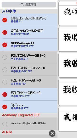 2、通过iTunes共享或者电脑浏览器安装用户字体,支持.otf、.ttc、.ttf、.dfont等格式。