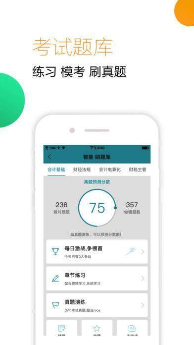2、专业、权威的练习中心:章节练习、知识点练习、网校模拟题、历年真题等均可通过手机实战演练,题型全面、极其精准,贴近考试,大幅提升应试能力,会计从业、会计职称、注册会计师全部包含哦;