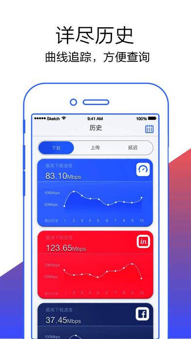 【历史记录】方便您查看比较每次的测速结果,每次测速结果均自动保存历史记录。