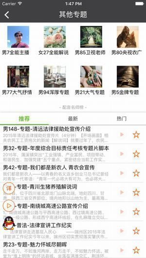 1、【看视频】看看配音高手们的作品,搞笑的、创意的、模仿的,各种有趣的视频应有尽有,每天让你捧腹大笑、惊喜不断;