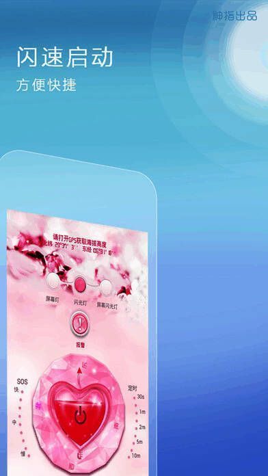 地震警报、安全防狼、报方位、海拔高度经纬度、炫彩灯、指南针、标尺、安神催眠、镜子;启动速度快,设计精美,是第一款根据IOS7风格设计的手电筒应用。