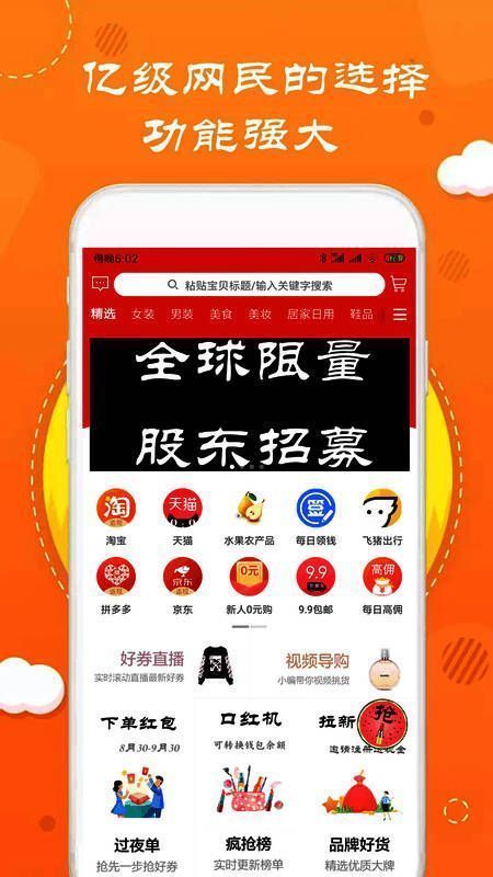 3、超高奖励。不仅有购物返还的佣金,每天还可以抢红包;