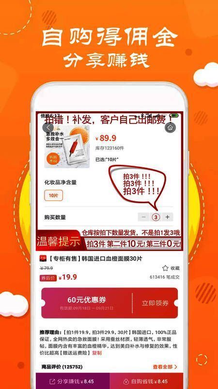 2、自己使用就可以轻松省钱,一键分享商品还可以轻松赚钱;