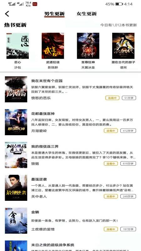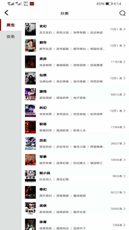 4、多种题材,穿越小说,言情小说,玄幻小说,都市重生,军事历史小说,BL等。