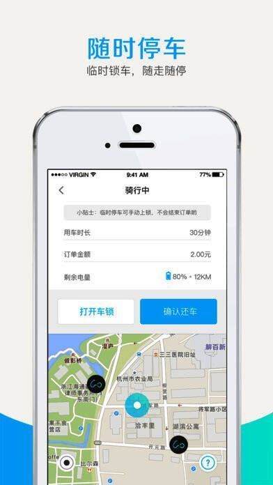 【随时停车】支持临时停车,锁车不结束订单。年轻的人生想停就停,属于您的GOGO一直在路边守候;