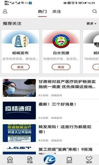 专门为崆峒地方打造的《新崆峒》是一款非常不错的新闻资讯阅读软件。在这款人软件内,拥有着丰富的新闻资讯内容可以实时的阅读的到,当地用户可以在软件内快速的阅读到崆峒版的热点头条,轻松便捷的实时了解到周边发生的大事小情!软件还整合了地方的各种便民的生活服务功能,以及政务事项在线即可办理,轻松享受便捷生活!