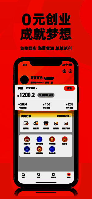 一键轻松创业:零投资、领成本、零门槛、零囤货、零风险。