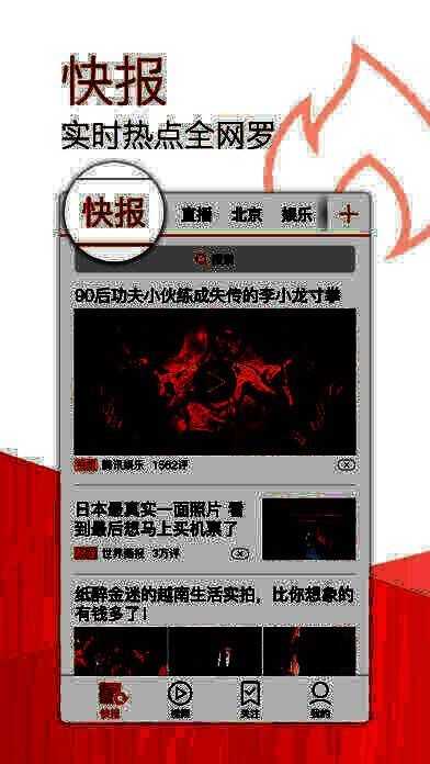 【快】:用户在这里看到世界。网罗全网热点——最快的资讯、最热的话题、朋友圈/微博疯转、身边新鲜事……一切尽收眼底。