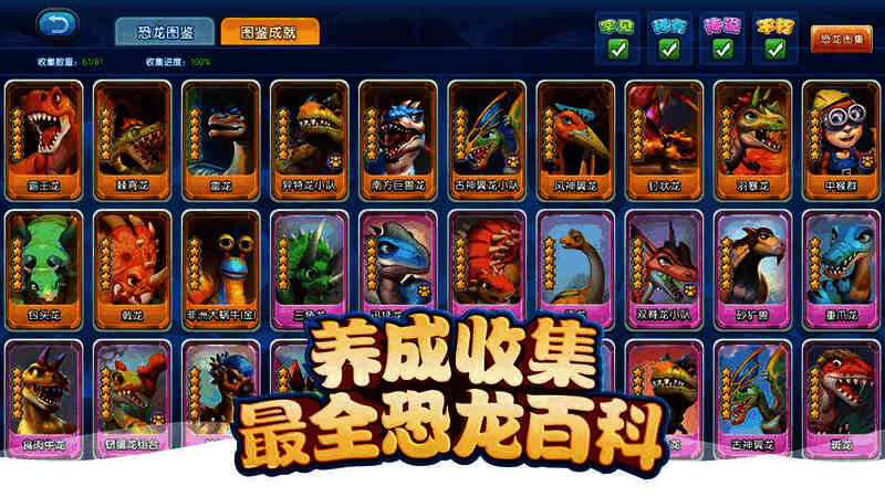 2、玩家可以自由选择恐龙卡牌,合理搭配阵容,组建专属恐龙战队,在挑战玩法中自由匹配对手挑战,参与挑战即可获得星级奖励,并在排行榜展现个人排名。