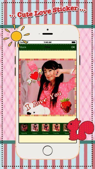 可爱的爱贴有令人敬畏的爱贴照片从任何照片来源包括画廊,从照相机或Facebook的新照片。应用任意数量的照片贴纸和将它们保存或分享他们与朋友和家人使用任何照片共享应用程序。