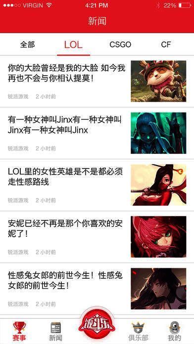 5、新闻资讯:实时的直播已经满足不了你?没关系,我们还有深度的赛事相关报道,一起跟随编辑大大感受电竞的魅力吧;