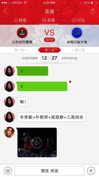 2、语音直播:wuli独家主播将比赛战况全方位无死角的通过语音文字图片直播,让你置身其中,即省流量还不卡;