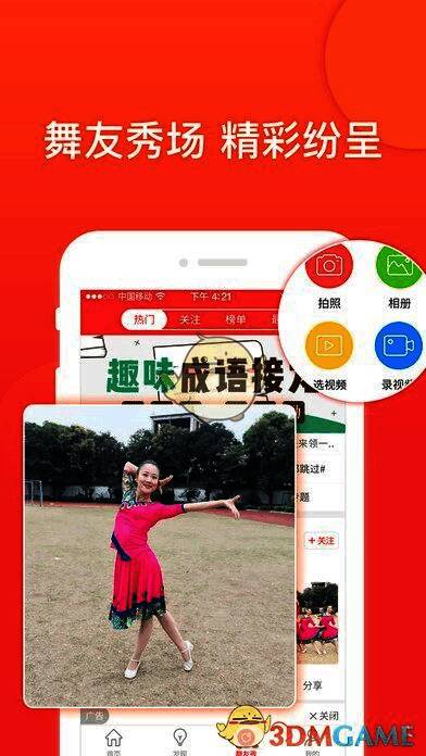 4、“舞友秀”轻松拍摄,一键发布,让您与广大舞友共同分享生活中最精彩、美丽的一刻;