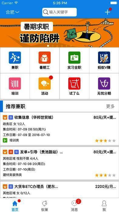 【蚂蚁兼职】是校园无忧网研发的以“为在校大学生找兼职”为核心服务内容、集合大学生培训、活动、交友、创业等功能的手机应用,是广受大学生好评的校园无忧神器,各类贴合大学生实际兼职需求的分类搜索以及基于地理位置的系统搜索,操作方便快捷,让好工作无处遁形;极具特色的定制功能,让适合的工作主动找上门。