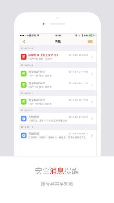 5、账号随身管理,异常消息提醒更安全。