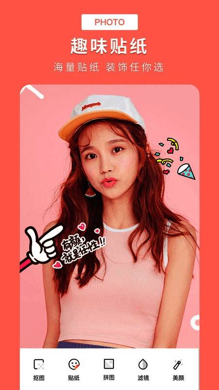 2、趣味贴纸,海量贴纸装饰任你选;想要的可爱贴纸任你选择,海量壁纸装饰你的图片定义独特美颜方式,为你带来精彩体验;
