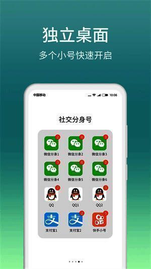 在移动社交高度普及的今天,一个人往往需要同时使用多个账号处理工作、生活、社交等多重事务。为此,《微信分身版》应运而生,作为一款专为安卓用户打造的应用分身工具,它不仅支持微信双开、多开,还涵盖了QQ、淘宝、支付宝、快手、拼多多、TT语音、游戏应用等主流APP的分身功能,真正实现“一机多号”,让用户的手机操作更加灵活高效。