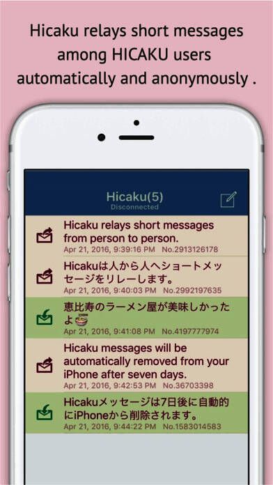 “Hicaku”在HICAKU用户之间自动中继短消息。