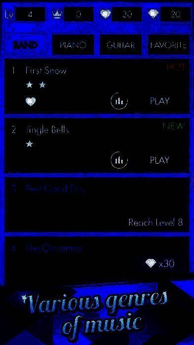 这款软件提供有游戏模式,可以演奏不同的歌曲,更牛的人可以选择SOLO模式,没有乐谱完全自己发挥。