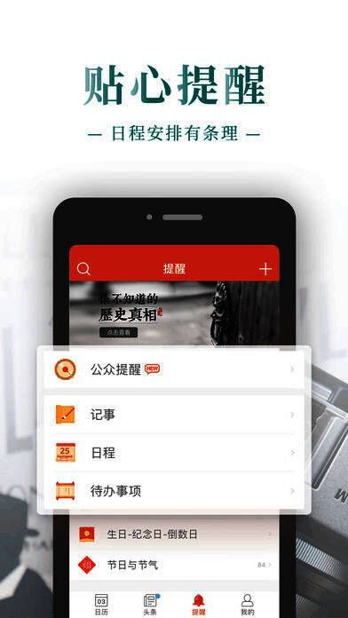 4、历史上的今天、星座运势、生理规律、阴阳历转换、每日吉签,传统文化与高效生活完美结合;