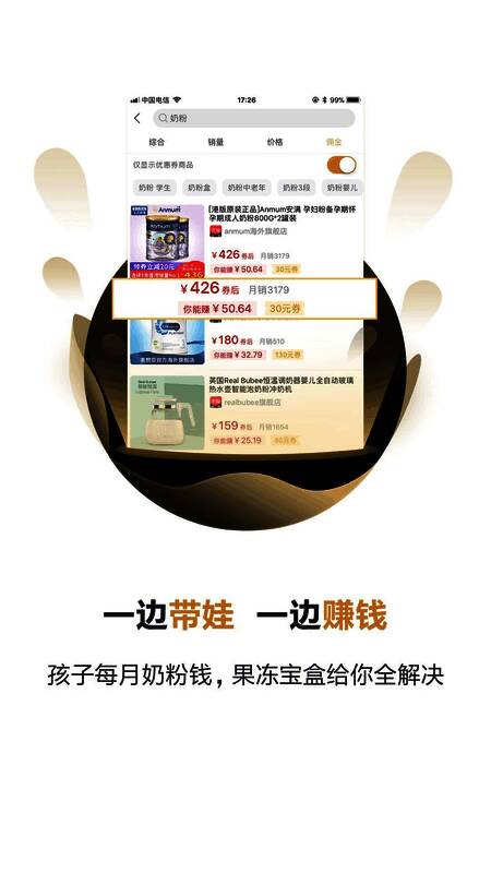 果冻宝盒app是个能省钱还能赚钱的超级返利APP。每天更新海量品牌高额优惠券,在果冻宝盒app赚到的钱,是省钱的100倍。果冻宝盒app,网购省钱,分享赚钱,网购用户的首选。