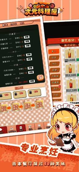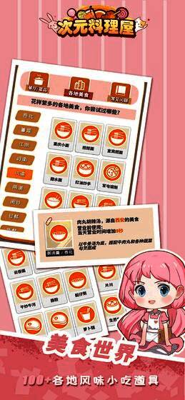《次元料理屋》一款自由很高的美食经营游戏,在这里你需要快速掌握各种菜肴的制作方法,并快速制作出顾客需要的菜肴,还要记得不断更新你的菜单,开发更多美味的食物,这样你的餐厅才能经营得更好,那还等什么,感兴趣的下载去体验吧。