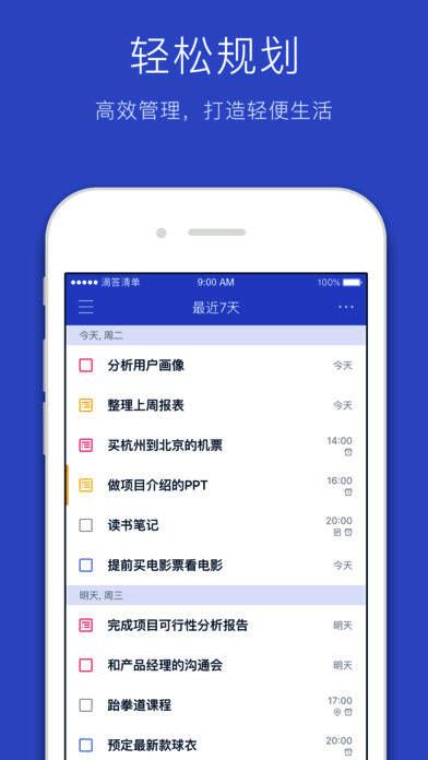 6、清晰分类:清单和文件夹可以管理任务,标签可以分类任务,优先级可以区分任务重要等级;