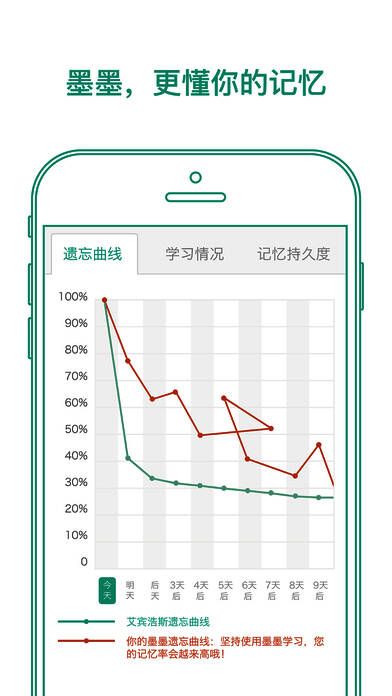 a、你的遗忘曲线:真实反映了你在每个阶段对所学习单词的遗忘率;