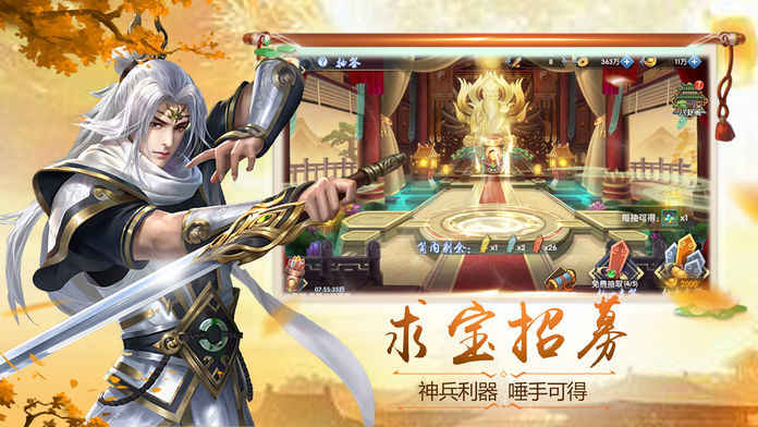 战场竞技,激情无限,与帮派兄弟一起扫荡boss列表,制霸天下,傲视全服!更多外形炫耀,更多丰富的游戏玩法,超强战斗的打击特效感,给你一场无与伦比的仙侠传奇体验!