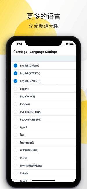 载更多主题。其实就是更改了键盘的背景,按键布局和面积是维持不变的。可选主题共有4款,还是比较少的,希望能持续更新新的主题。