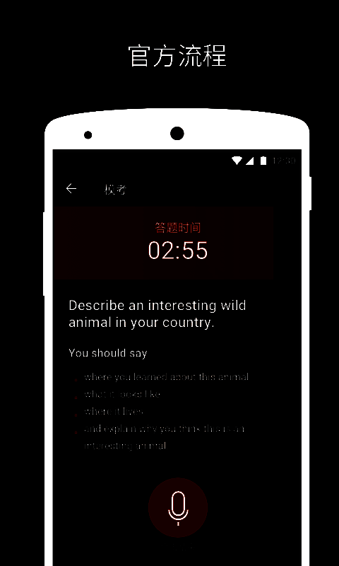 5、逼真还原:整个模考过程完全复现真实雅思口语考试现场;