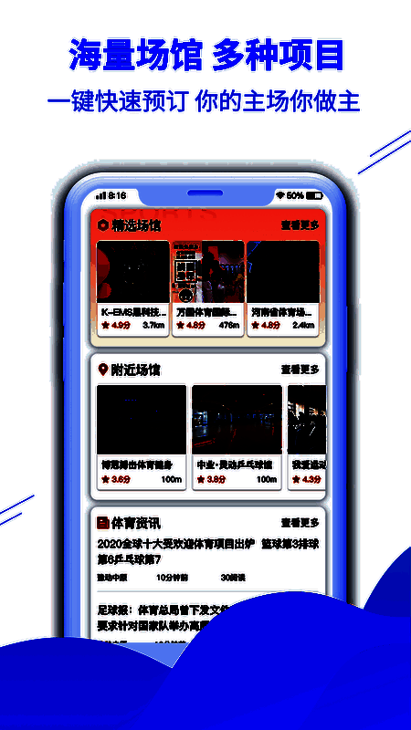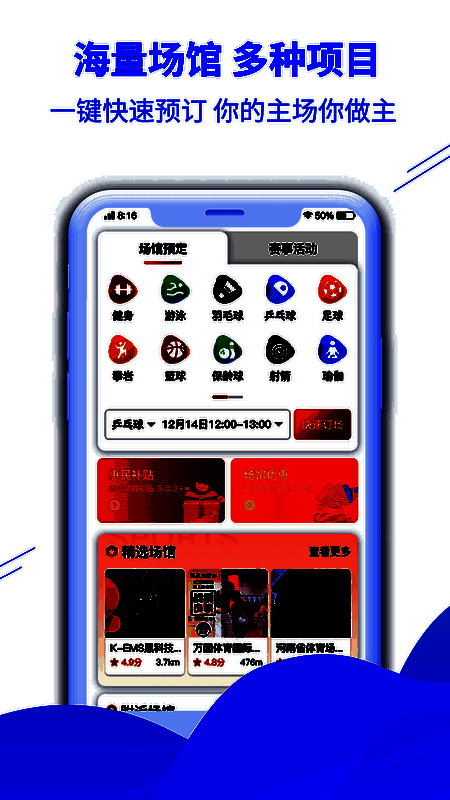 3、为大家带来超多优惠补贴福利,让大家预订场馆更省钱,还拥有丰富的活动等你来参与。