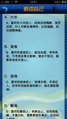 3、本游戏共有三大类、200多道测试题目,心理测试大全,帮你认识你自己!