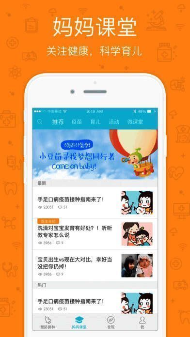 2、妈妈课堂:通俗易懂的语言,生动有趣的漫画、动画讲解疫苗、育儿知识,轻松易懂;