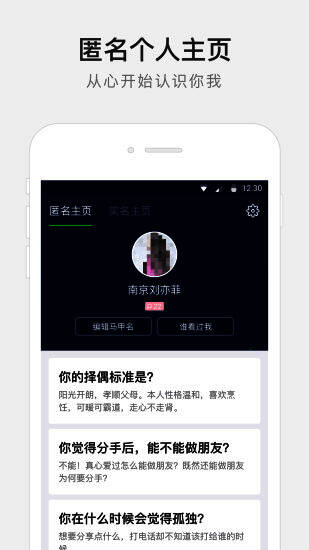 朋友印象里除了可以用实名制的方式和朋友聊天社交,还有一个照顾“腼腆星人”的功能,就是匿名聊天。只要到你的朋友主页,点击“发起匿名聊天”,就可以在朋友并不知道你是谁的情况下畅所欲言了;