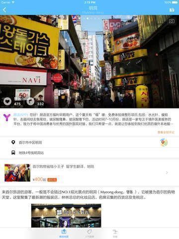 3、中文标识首尔景点、购物、美食、住宿酒店信息含介绍、联系电话、交通、营业时间等;