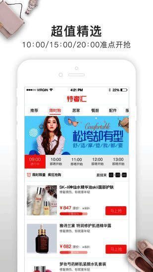 会员制的掌上购物软件!《特奢汇》不仅能为你提供各种类的优质商品,更可以让你在这款软件中享受到使用现金券抵用部分现金的巨大实惠!赶快下载软件开始购物吧!